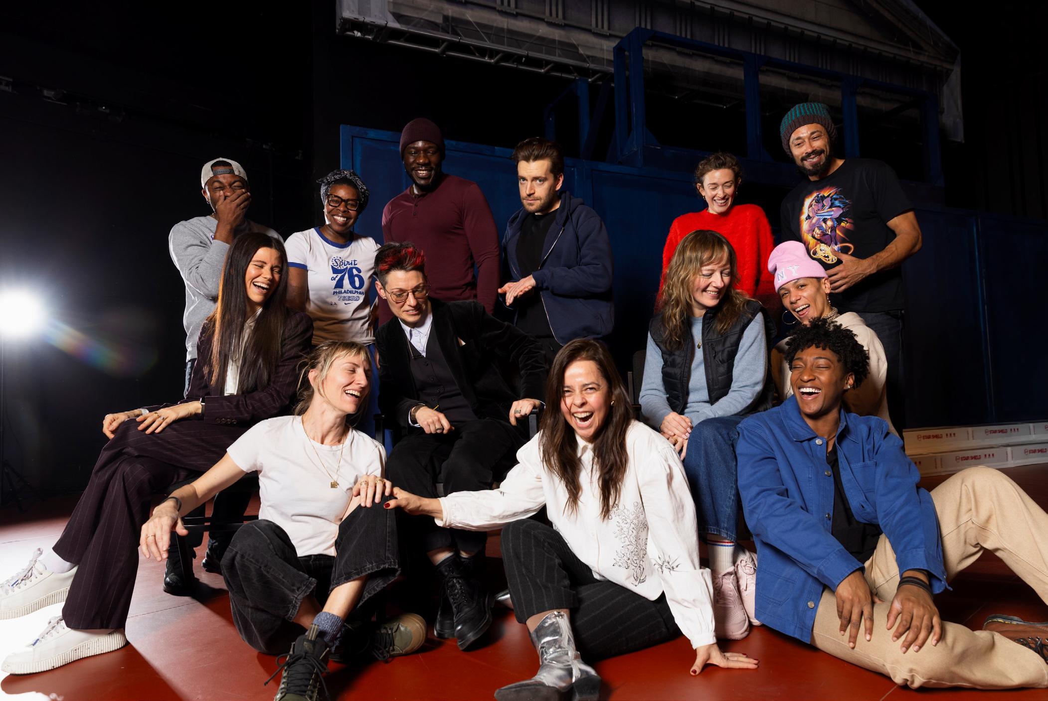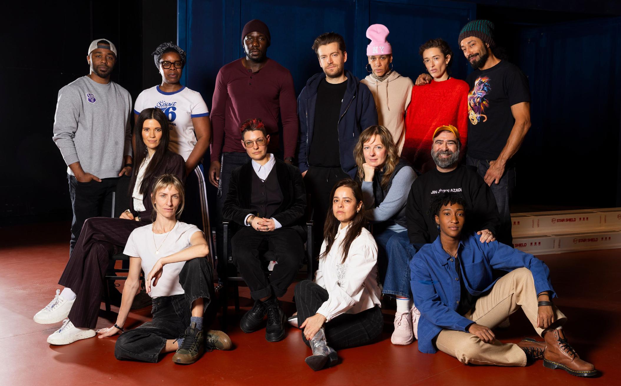 The company of The Tragedy of Coriolanus. Back row (left to right): Kevin Alicea, Roslyn Ruff, McKinley Belcher III, Jack Berenholtz, Sarin Monae West, Danica Selem, William DeMeritt. Middle row: Meredith Garretson, Ash K. Tata, Zuzanna Szadkowski, Barzin Akhavan. Bottom row: Mickey Sumner, Emma Ramos, Merlin McCormick. Photo by Travis Emery Hackett. Not pictured: Jason O’Connell, Pomme Koch.