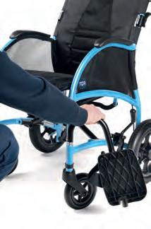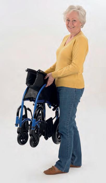 for easy transfer Footrests simply fold and lock flat against the frame Backrest folds easily and completely