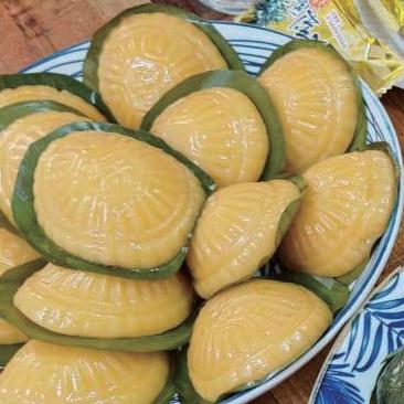 粿、綠豆糕,還有一顆顆晶 瑩剔透的椰奶果凍,更可貴 的是糕點所用的艾草、椰子 都是她親手種的。