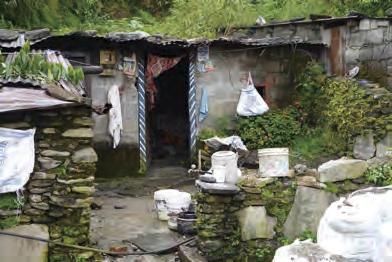 第一天義診結束,我們有幸得以參觀營地和 其周遭,營地周遭的尼泊爾人聚居處生活條件 更差,水溝在民宅前方,羊、雞和人的生活空 間沒有區隔,甚至有頭羊從牆面上的洞中探頭 出來,而屋前的道路粗礪難行,走到半途有卡 車迎面而來,行人完全沒有空間可以避開,卡 車只能停下讓我們從旁邊的縫隙鑽過去。走在