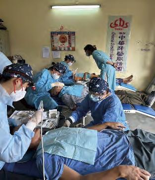 飛,我們便沒辦法再反悔,因此義診中總覺得缺 這少那,這時候不得不提前輩醫師的厲害,最經 典的便是口外醫師將一支又舊又重的鐵管,消毒 後包上治療巾,便成了手術槌。而到尼泊爾的頭 一天,我們所帶的漱口水便幾乎用罄。第二天, 我們帶來的牙線也送完,找遍小超市和醫療用品 行,替代品貴得出乎意料。這也讓我們理解到, 有時台灣的黃金標準,在當地可能寸步難行,需 要有足夠的經驗,才能成為一個老練而且真正摸 著當地居民需要的義診醫師。