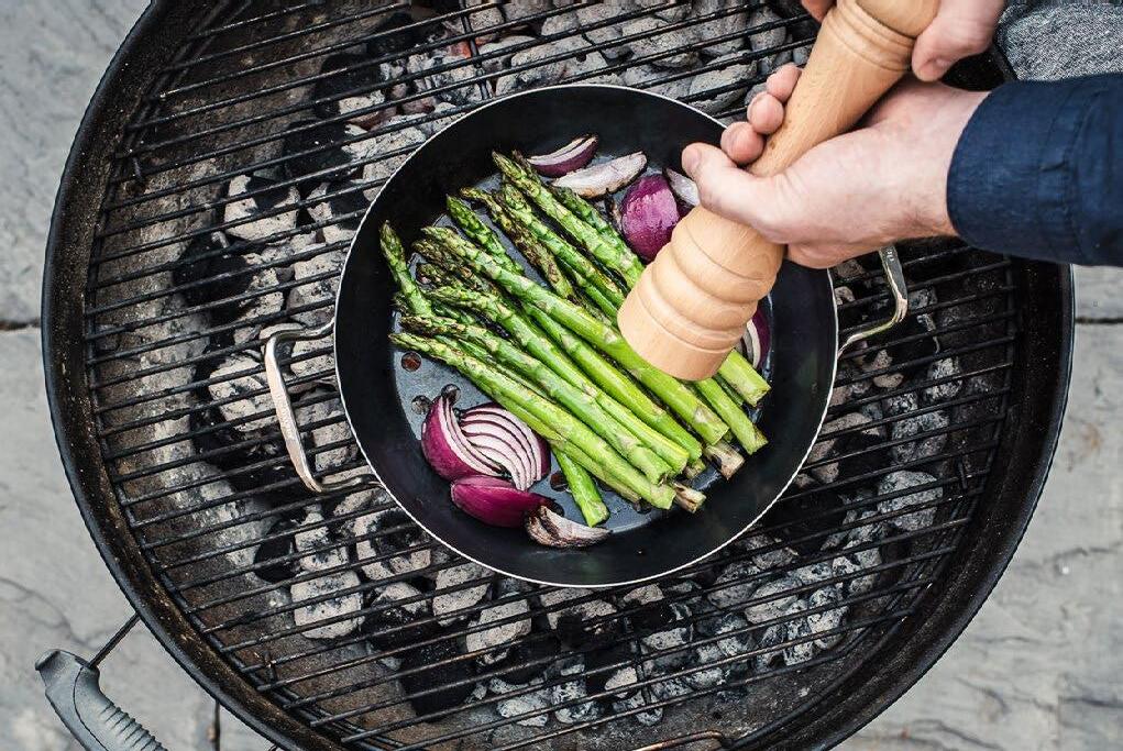 Patelnie ze stali węglowej świetnie sprawdzają się na grillu - to rozwiązanie