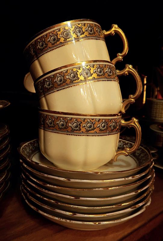 Las estanterías del local rebosan de nombres emblemáticos como Baccarat, Royal Doulton, Haviland, Meissen y Limoges, además de los exquisitos vidrios victorianos con dibujos de niños pintados en esmalte blanco por Mary Gregory, difíciles de encontrar.
