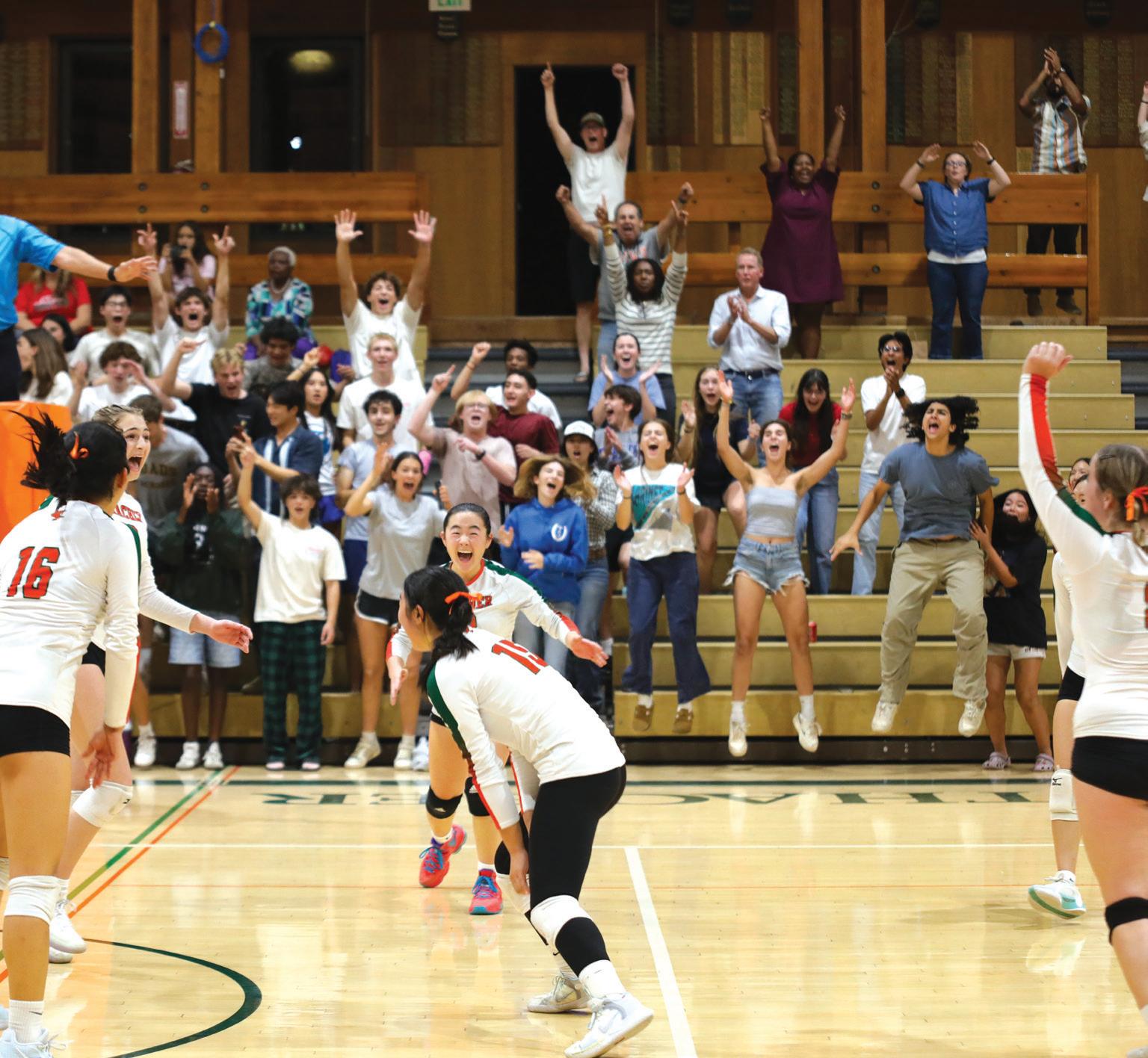 A first-round match-up pitted Thacher against Rancho Verde, and it proved to be one of the most exciting and thrilling matches in the fall season for any sport. Thacher prevailed in the fifth game after a tall leap and powerful smash by Cata Brown ’26 to win the nail-biter of a game. Not to be overlooked, the sound of a roaring home crowd in both the student section and the amassed crowd of adults from the community provided unwavering support in their energetic chants and cheers and certainly buoyed the girls in this epic battle.