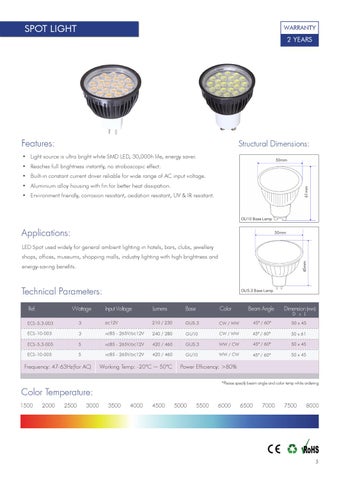 • Light source is ultra bright white SMD LED, 30,000h life, energy saver.