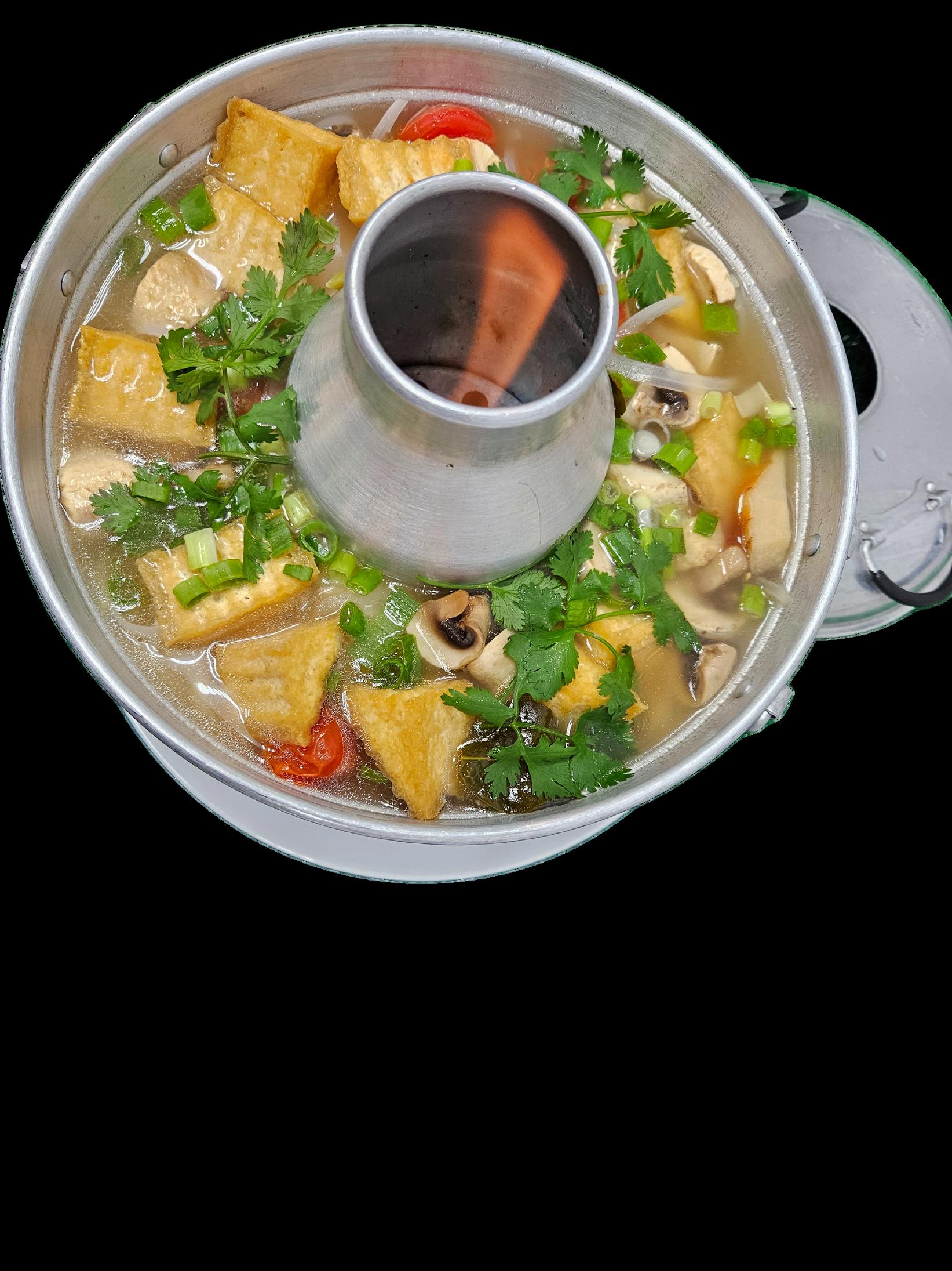 PLEASE CHOOSE ONE OF THE FOLLOWING OPTION CHICKEN, SOFT / FRIED TOFU, VEGETABLE OR NO MEAT SHRIMPS +$4 OR SEAFOOD (SHRIMP, CALAMARI, SCALLOP AND FISH)+$7 SIDE: BOWL $9 SIDE: HOT POT $15