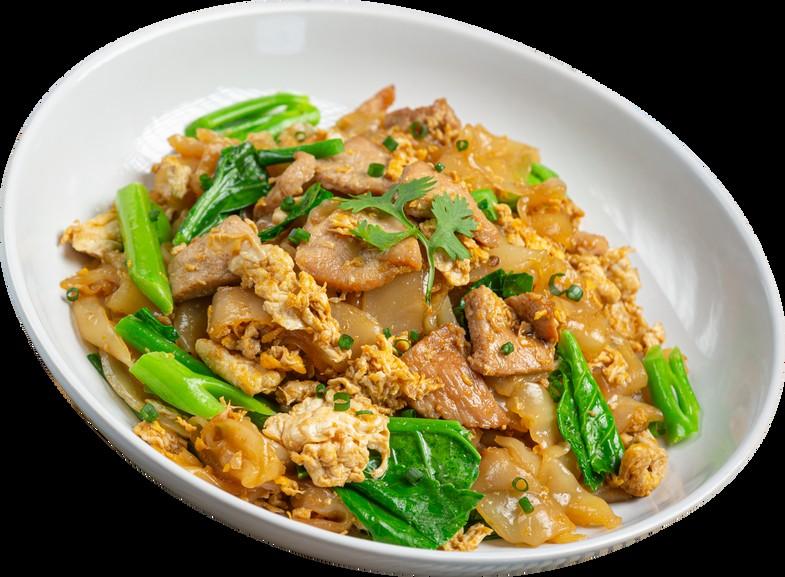Flat rice noodles with fried tofu & mixed veggie