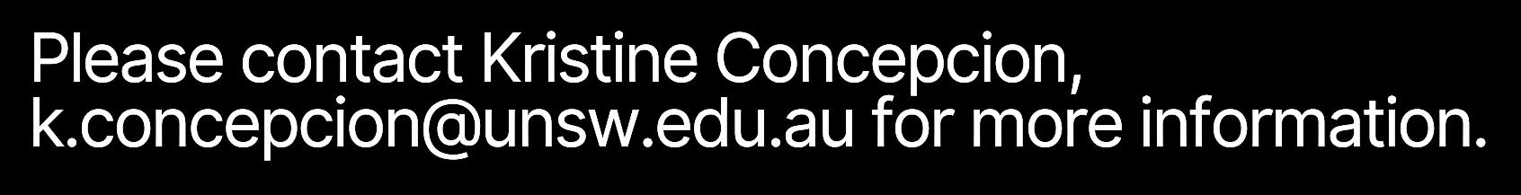You can contact Kristine Concepcion, k.concepcion@unsw.edu.au for more information.