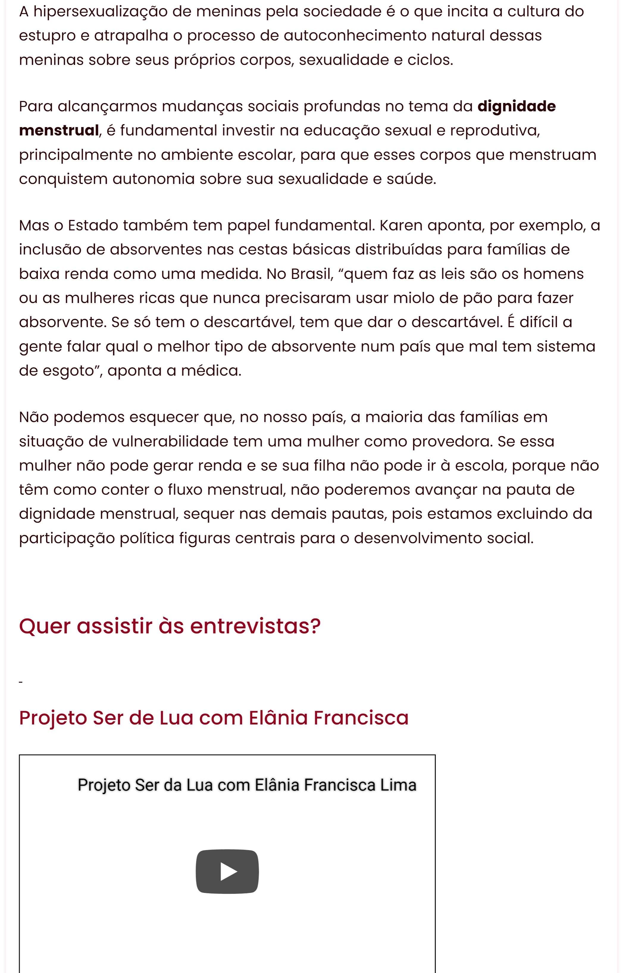 [artigo jornalístico/ SEO para blog] [Sexualidade] Dignidade menstrual para além dos absorventes