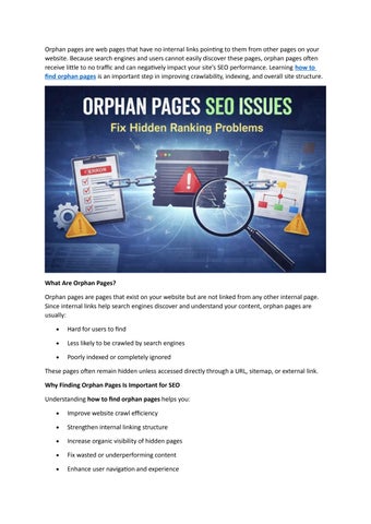 Orphan pages are web pages that have no internal links pointing to them from other pages on your website. Because search engines and users cannot easily discover these pages, orphan pages often receive little to no traffic and can negatively impact your site’s SEO performance. Learning how to find orphan pages is an important step in improving crawlability, indexing, and overall site structure.