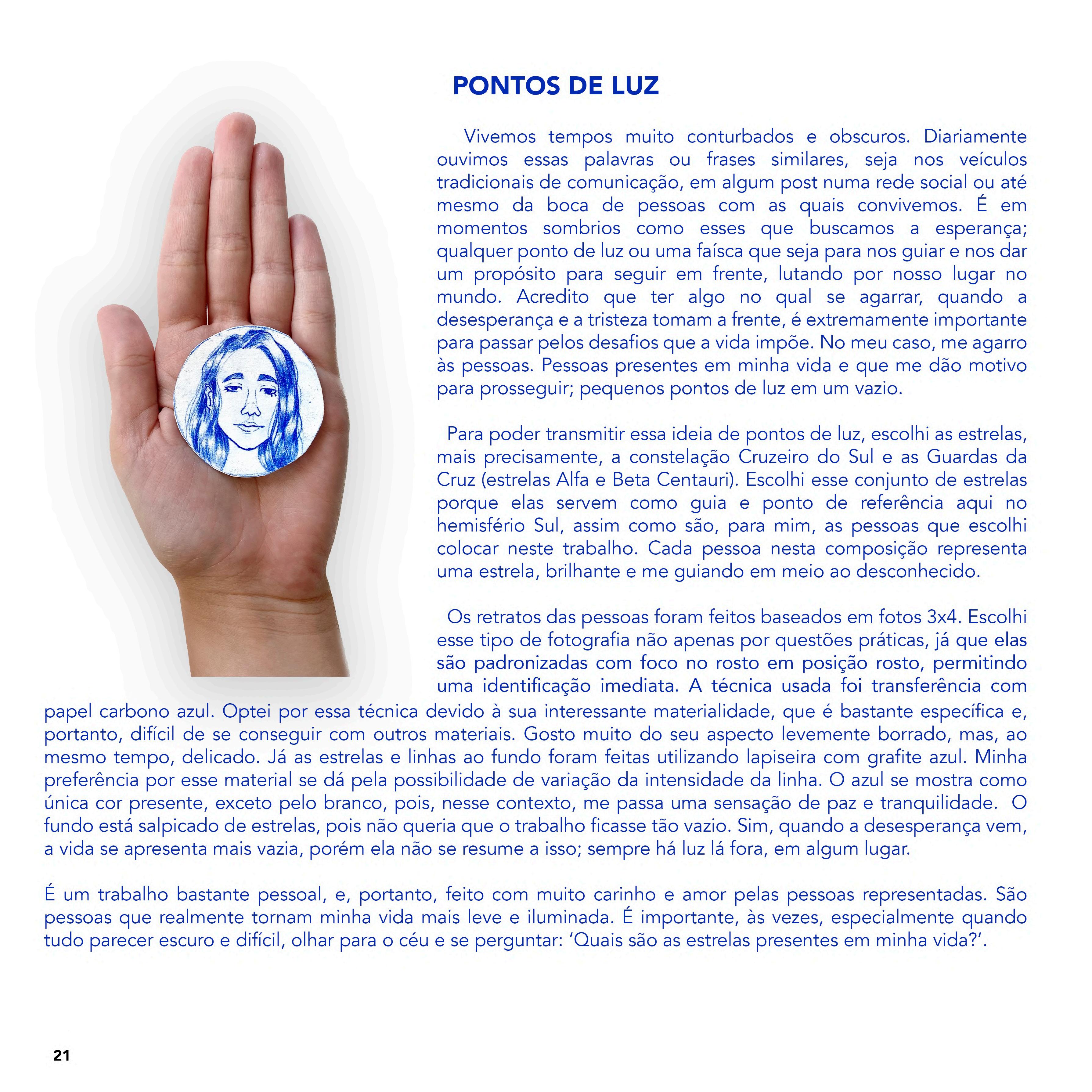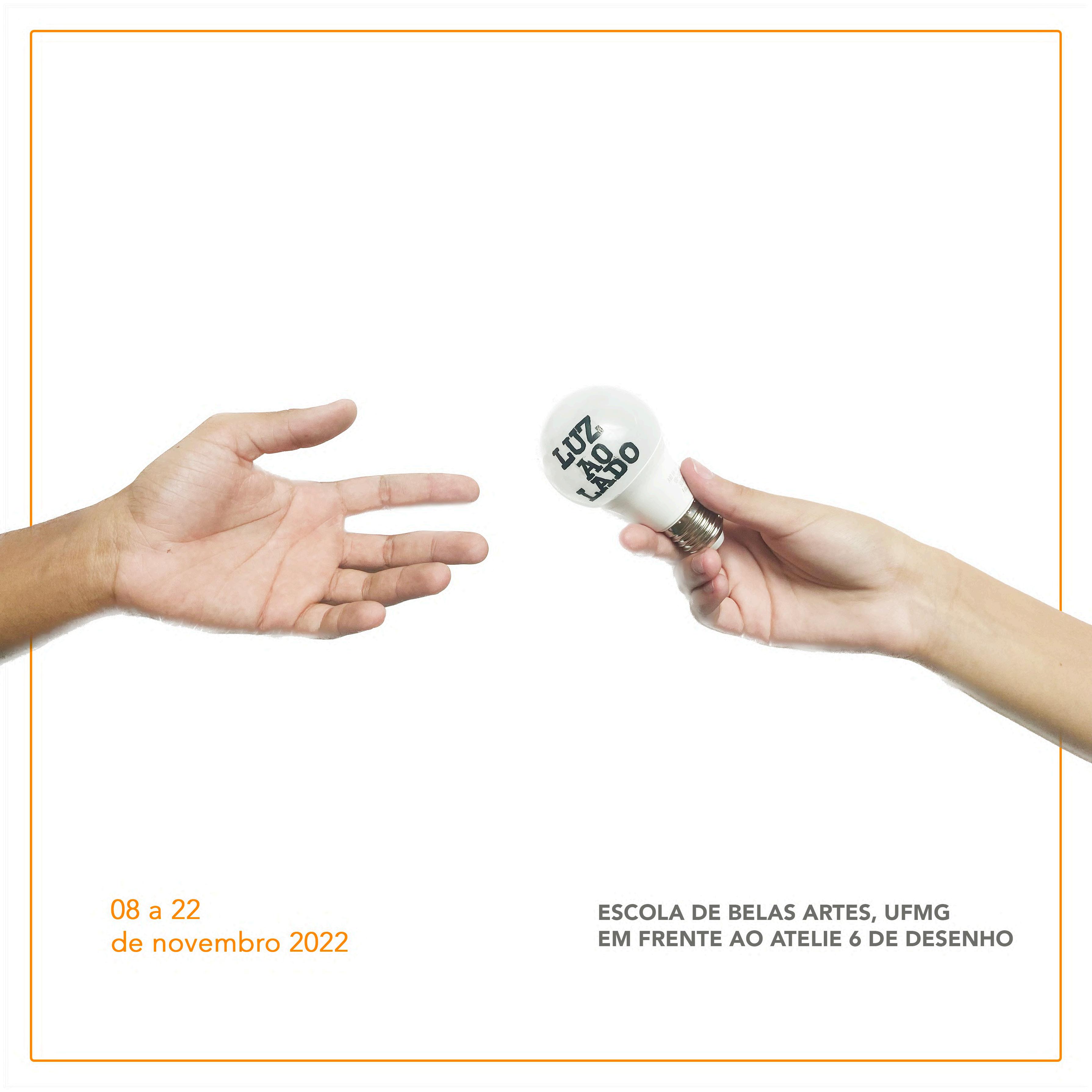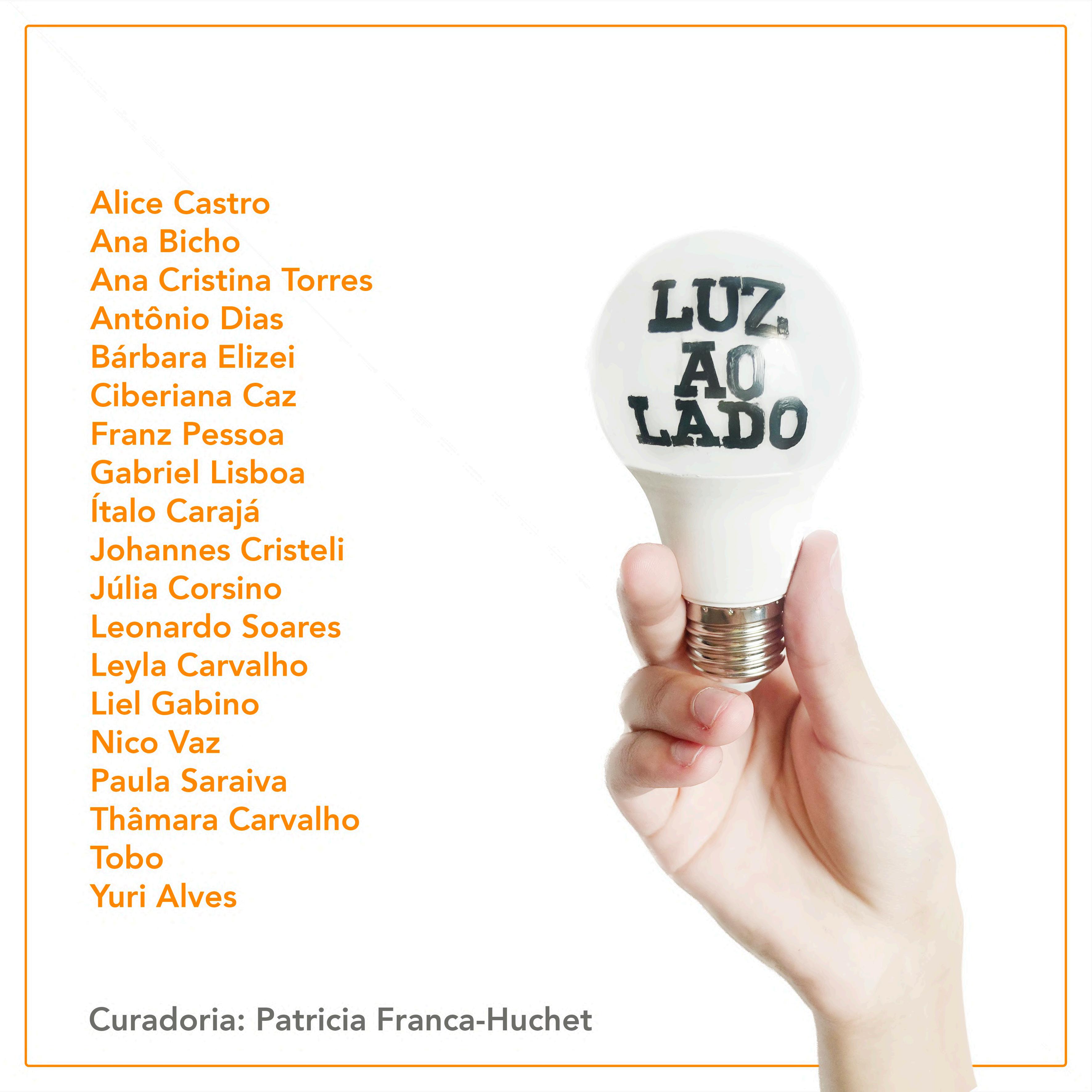 LUZ ao LADO é uma exposição com curadoria de Patricia Franca-Huchet e participação dos artistas estudantes da ESCOLA DE BELAS ARTES da UFMG. Textos dos artistas Antônio Dias, Liel Gabino e Thâmara Carvalho. No catálogo presença de obras e textos de Alice Castro, Ana Bicho, Ana Cristina Torres, Antônio Dias, Bárbara Elizei, Ciberiana Caz, Franz Pessoa, Gabriel Lisboa, Ítalo Carajá, Johannes Castelli, Júlia Corsino, Leonardo Soares, Leyla Carvalho, Liel Gabino, Nico Vaz, Paula Saraiva, Thâmara Carvalho, TOBO e Yuri Alves. Tratamos do tema da LUZ como elemento fundamental das artes visuais na observação de sua materialidade e força simbólica.