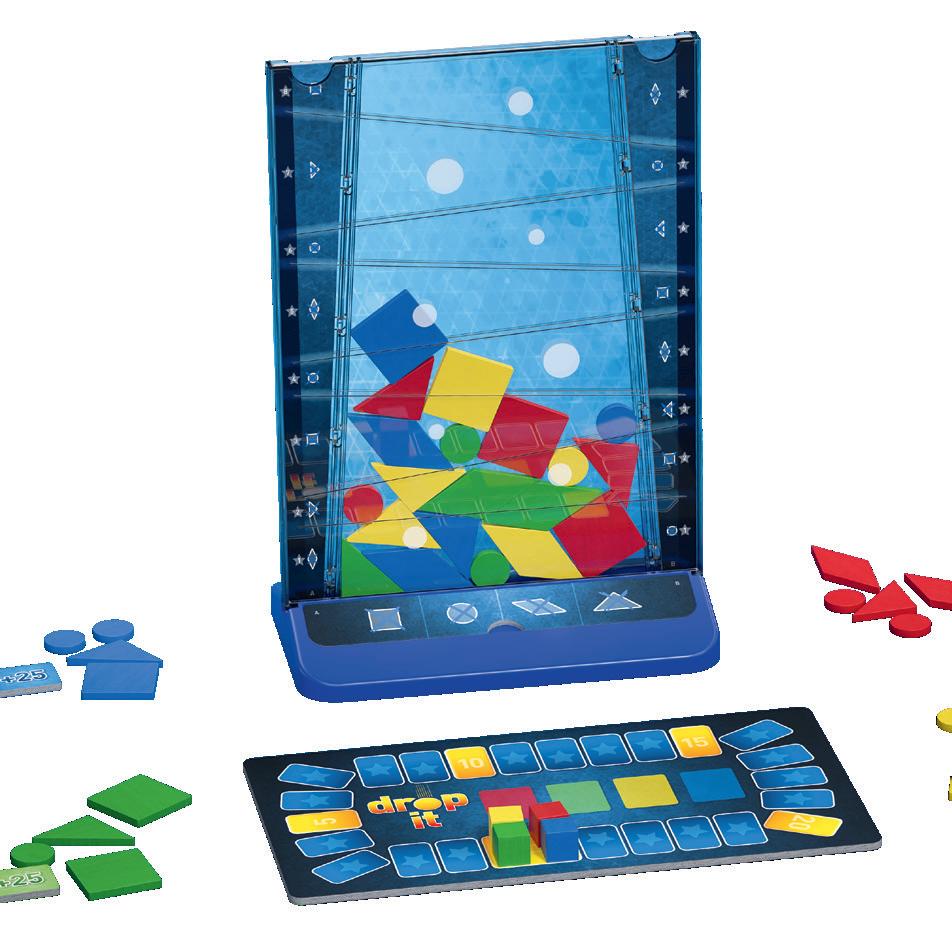 In this colorful, inventive family game, players drop shapes into the vertical game board. They earn points for the highest level that their shape reaches when it lands and extra points for touching bonus circles. But be careful: Don’t break a landing rule! The shape you dropped is not allowed to touch matching shapes or colors after it lands. The winner is the player or team with the most points at the end.