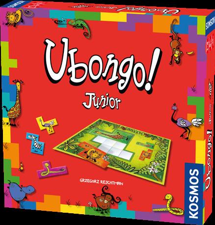 Ubongo Junior brings the fun and lively tile-placing play from the original hit puzzle game Ubongo to players ages five and up. The players race to place their animal tiles to perfectly fill a specific area on their boards as quickly as possible. The fastest player shouts “Ubongo!” and quickly takes colorful plastic gems from the bag. The other players keep racing; as long as the hourglass is still running, there is still time to earn some gems. The player with the most valuable gem collection wins. Each of the 50 puzzle boards has an easy side and a more challenging side, for a total of 100 puzzles.