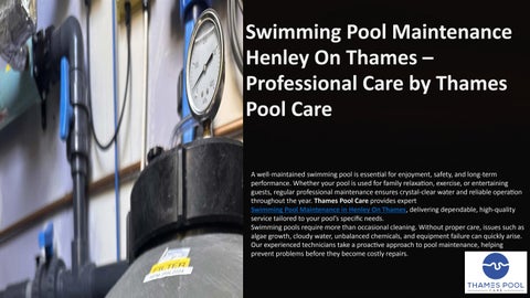 A smooth-running swimming pool relies on several essential components, and the pump is one of the most critical. It keeps your water circulating, filters out debris, and supports overall hygiene. When your pump begins to fail, it can lead to cloudy water, inefficient filtration, and even costly repairs down the line. That’s why timely Swimming Pool Pump Replacement High Wycombe is so important—especially for homeowners who want to keep their pool in top condition. At Thames Pool Care, we specialise in providing reliable, professional, and long-lasting pump replacement services tailored to your pool's needs.