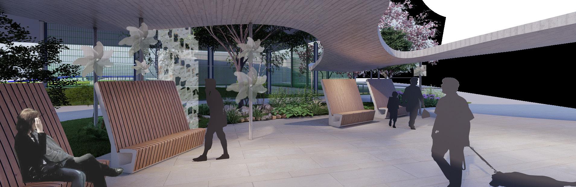 DESIGN STRATEGIES เเสงเเดด ร่่มเงา อากาศ ฝุ่่�น อ่ณหภููม ลม ร่ับรู่�เสียง กลิ�นสดชื่่�น ป รับองศาของอาคารเ พื้้ อ รับลมเ ป ด่ ใ ห้ลมเ ข้า ถ่งที่ัวพื้้นที่่เกด่ open space เพื้้อรับลมเกด่ เป็น “refreshing area " ใหผัู้คนรับรู้ถ่งธรรมชาต้ โด่ย์ออกเเบบในเเนว คด่ของ “ Biophilic Design ” ผั่านองค์ประกอบต้่างๆ