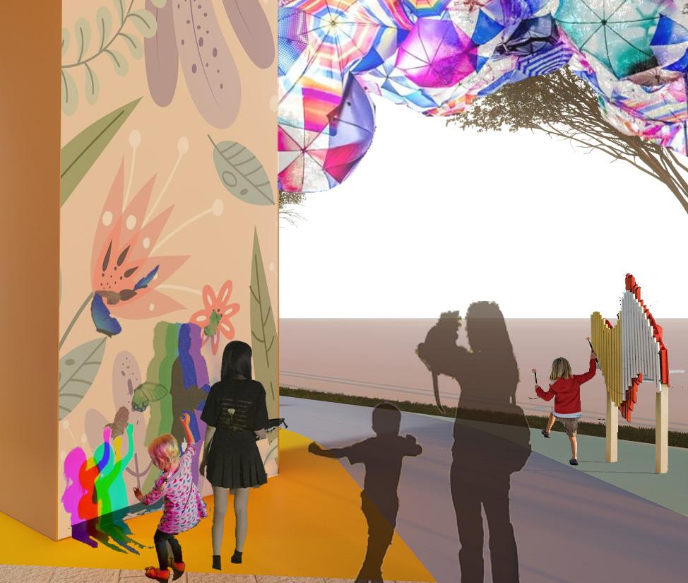 VIBRANT TRAIL ที่างเด่ิน street art จ้ะที่้า รอบข้าง ที่่เป็นกลุ่มคนที่้างานหาเ พื้ักผั่อนได่ง่าย์ข่น อาจ้เป็นเ เด่ินมา หร้อนด่พื้บปะเพื้้อนห โด่ย์เน้น Interactive installation ด่่งด่ด่คนมาในชุมชนมากข่น เ กับคนในชุมชน เเละเกด่เป็น สวนราชเทวีภิิริมย์์