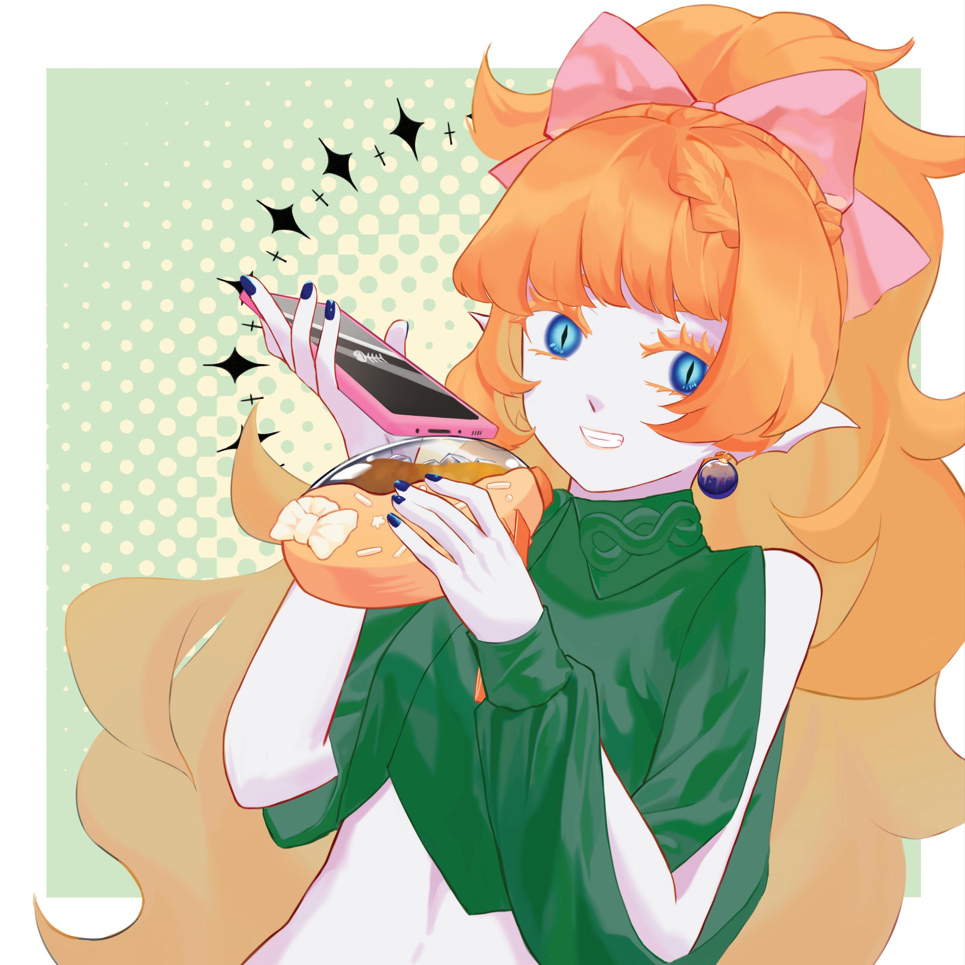 Ihatehotcolors.Youcanseealmostmypaintingsaremadewithblue, whiteandpurple.Irarelydrawsuchacharacterwithbrightorangelikeher. Idetestvibranthues.Iusedsapgreen,abrightcomplimentary color,inordertomakethepaintingresembleapretty-cuteorange.Atthe veryend,itappearstobesomewhat...unsatisfactory...Imay,however, depictherinamorecurrentdrawing.