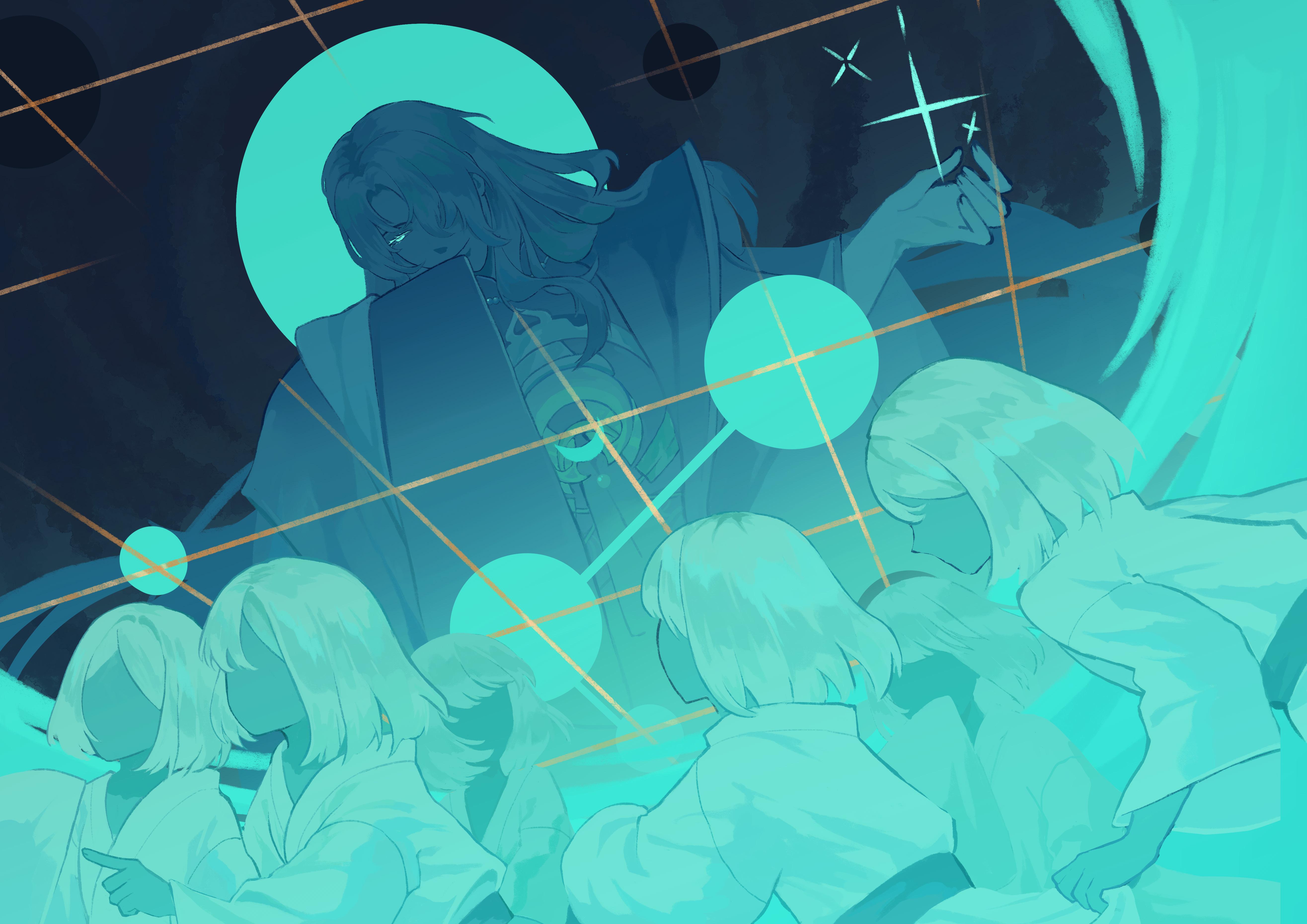 To seek the answer, he needed to convince himself with his own lies. His first lie was to both the world and himself. Ultimately, it would never be a secret that the god who foretells destiny is a lie. He wondered what he would experience and what answer destiny would give him when he, a would-be devout believer claiming to be a god, found out the truth.