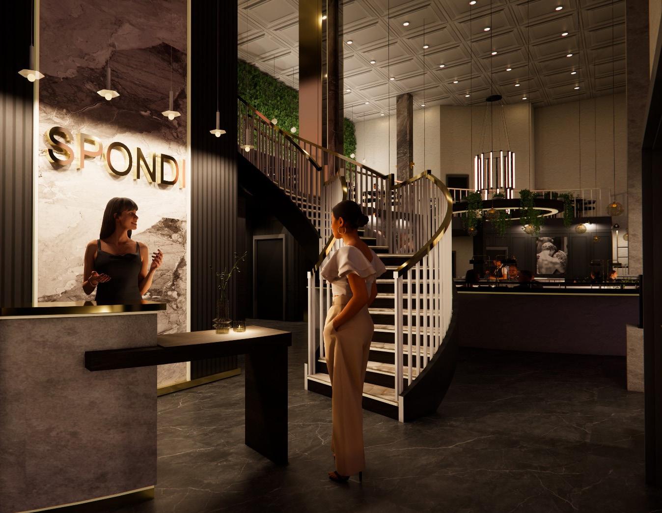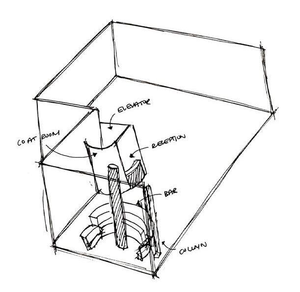 The re-branded restaurant, Spondi, draws inspiration from the architectural form of Greek amphitheatres and the dark and moody feelings of tragic Greek plays. The concept of “spectacle” refers to the observation of chefs and bartenders, like the experience of watching a Greek play. Curvilinear forms play a large role in the architectural elements and furniture and is used as a wayfinding technique.
