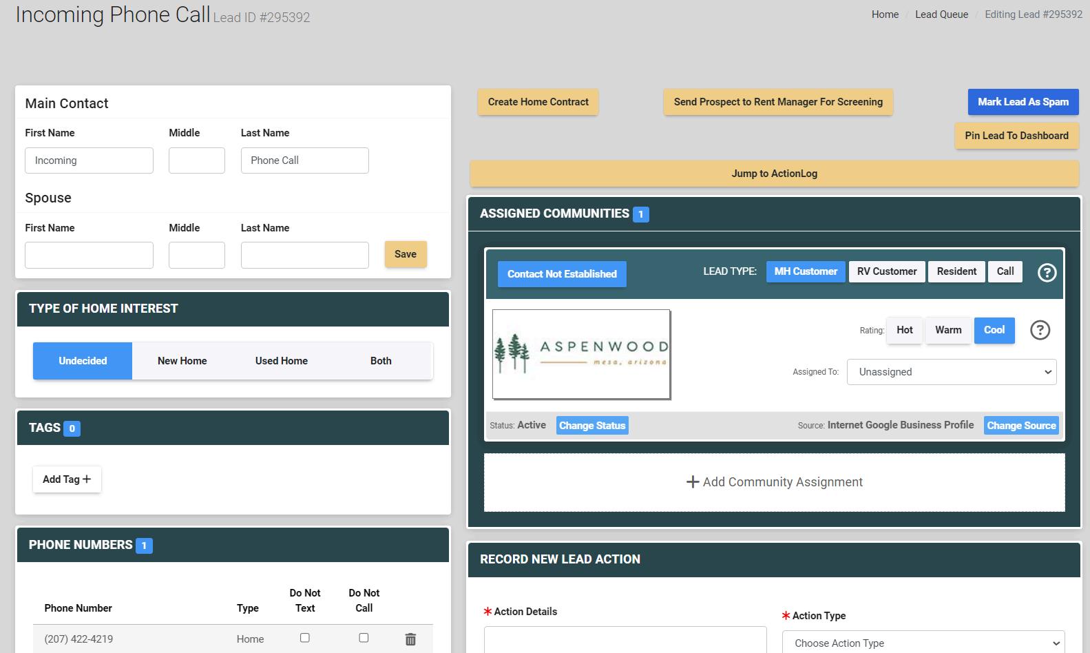 Resident Calls: If the caller is a Resident, please change the Lead Type to Resident This will Inactivate the lead.