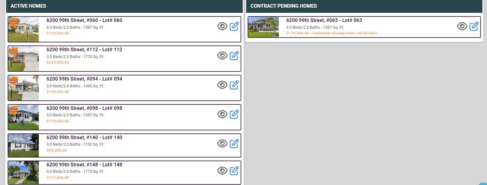 Contract Pending Homes: All pending contracted homes are displayed and you can click the Edit button to view/edit them.