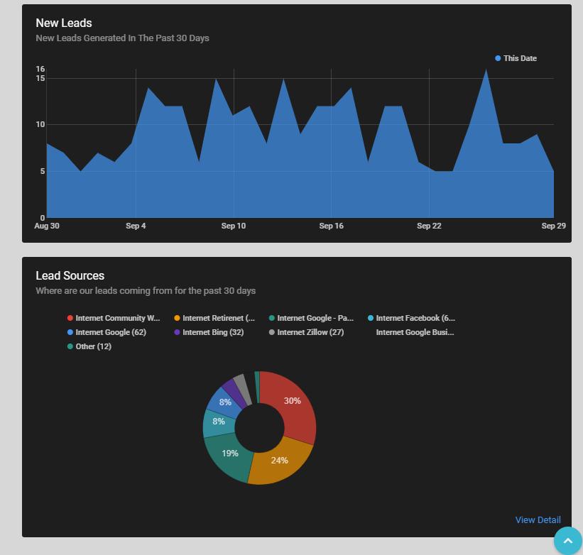 New Leads: Interactive chart showing all New Leads generated over the past 30 days and how many per day.