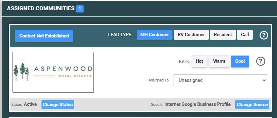 RV Leads: If the caller is inquiring about an RV site, please change the Lead Type to RV