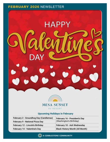 Happy February! As we move into a new month, we want to take a moment to thank each of you for being part of our wonderful RV resort community. February is a time to celebrate connection, kindness, and community—and we are grateful for the welcoming atmosphere you help create every day.
