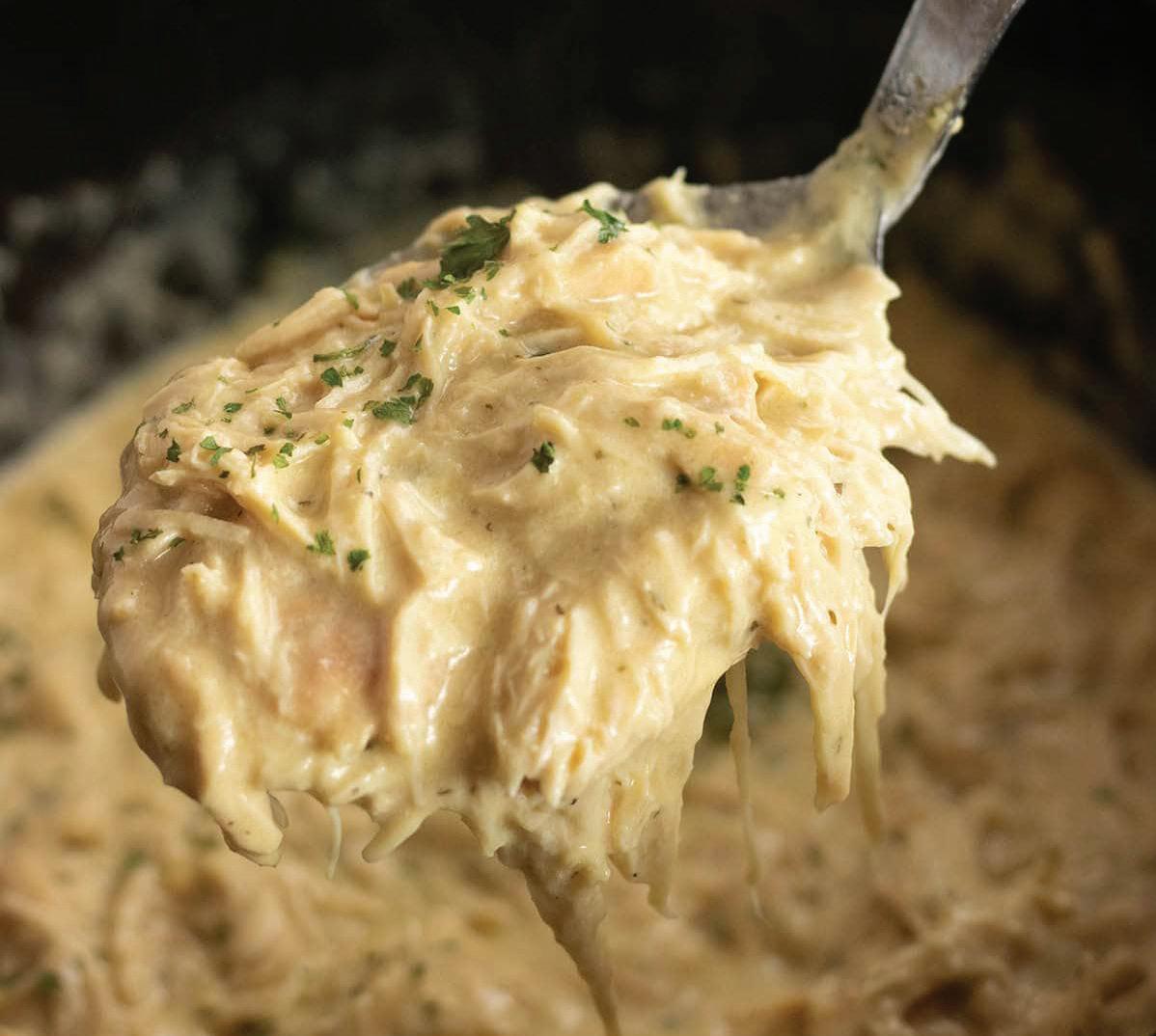 Sprinkle ranch seasoning evenly over the chicken. Pour cream of chicken soup on top.