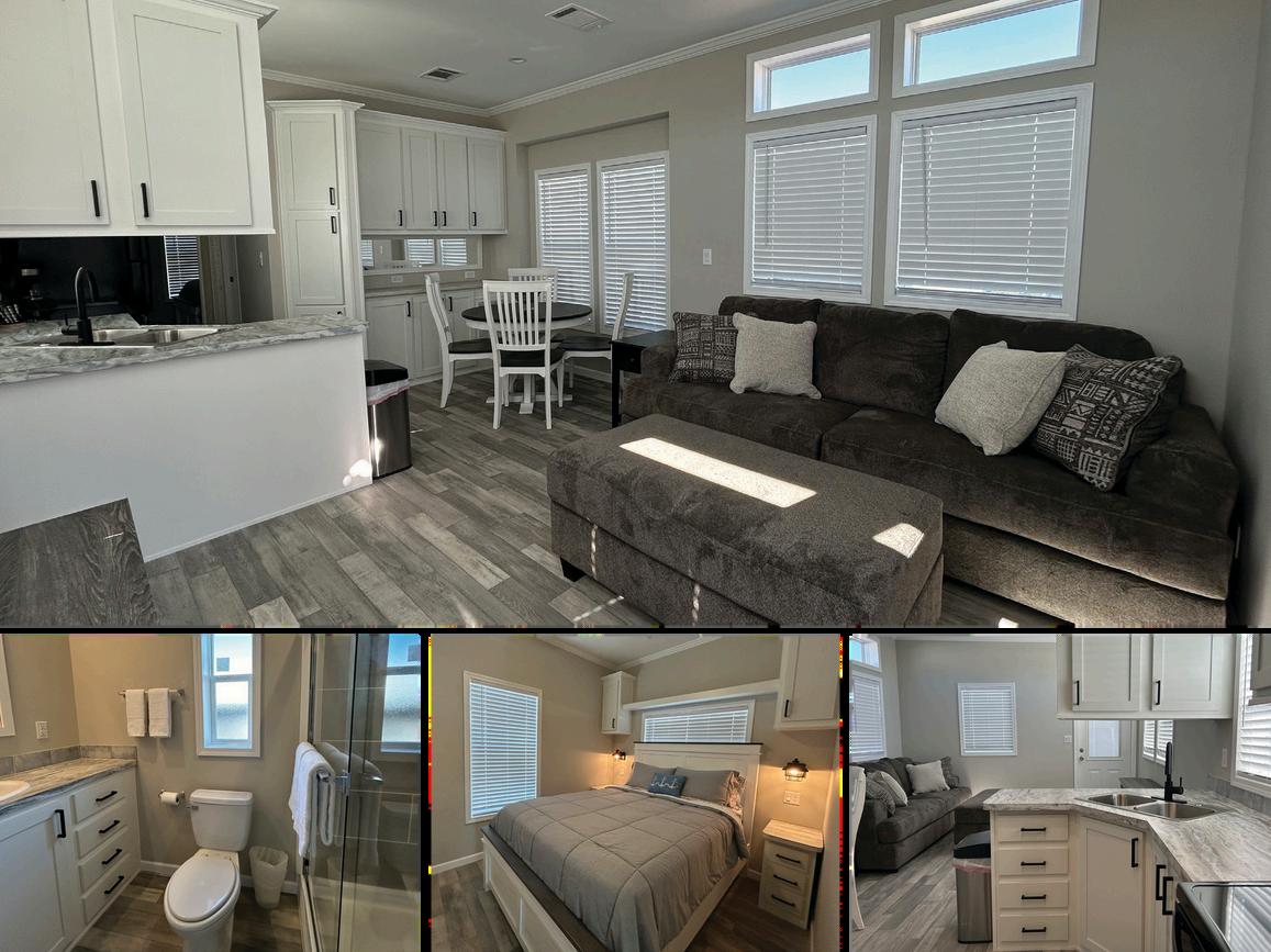 This is a very cute, 1-bedroom / 1-bathroom tiny home with a beautiful lot and a screened sunporch. Home is located next to a putting green, horseshoes, a fire pit, and a dog park. It comes with a new refrigerator and cooktop
