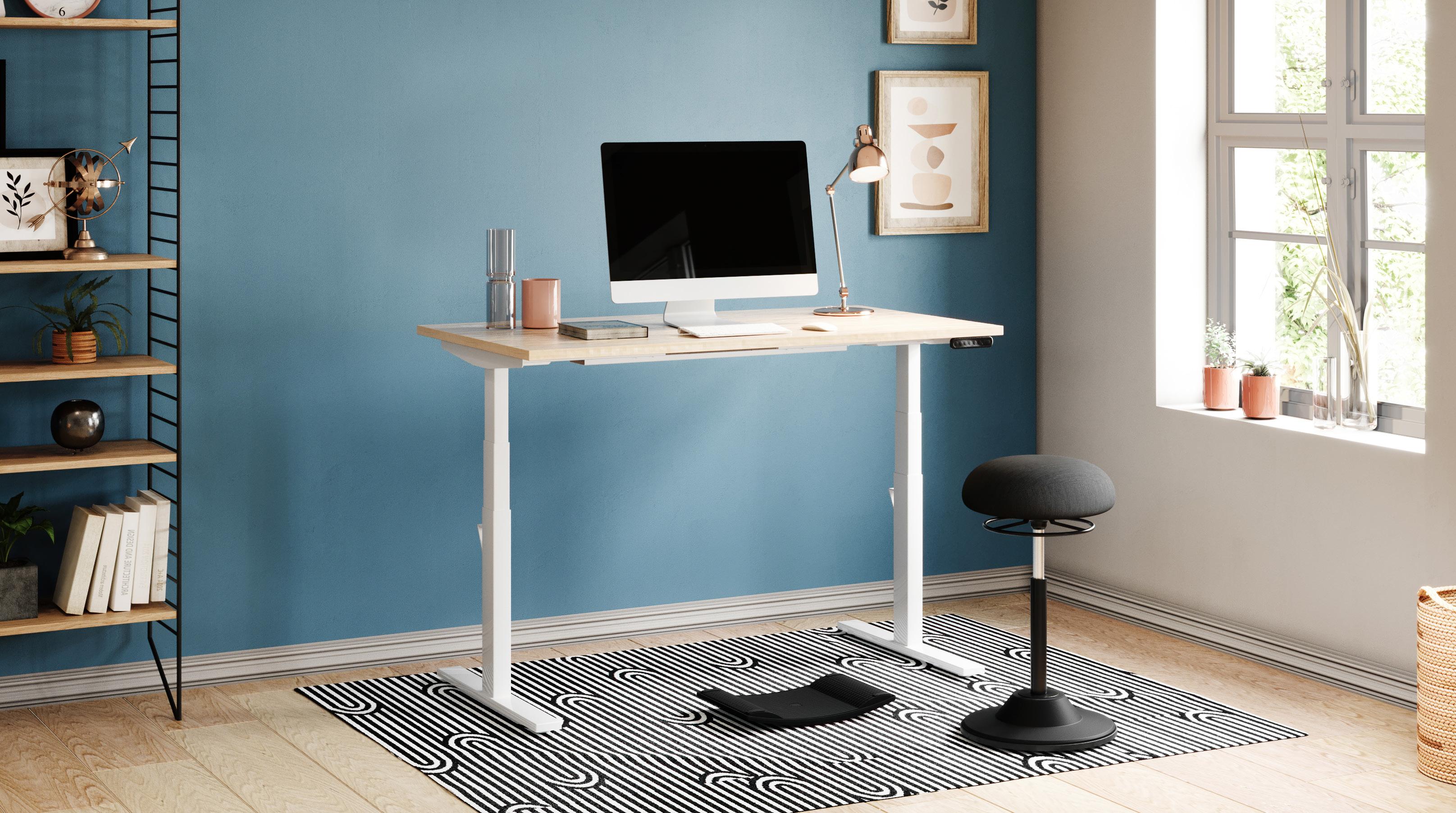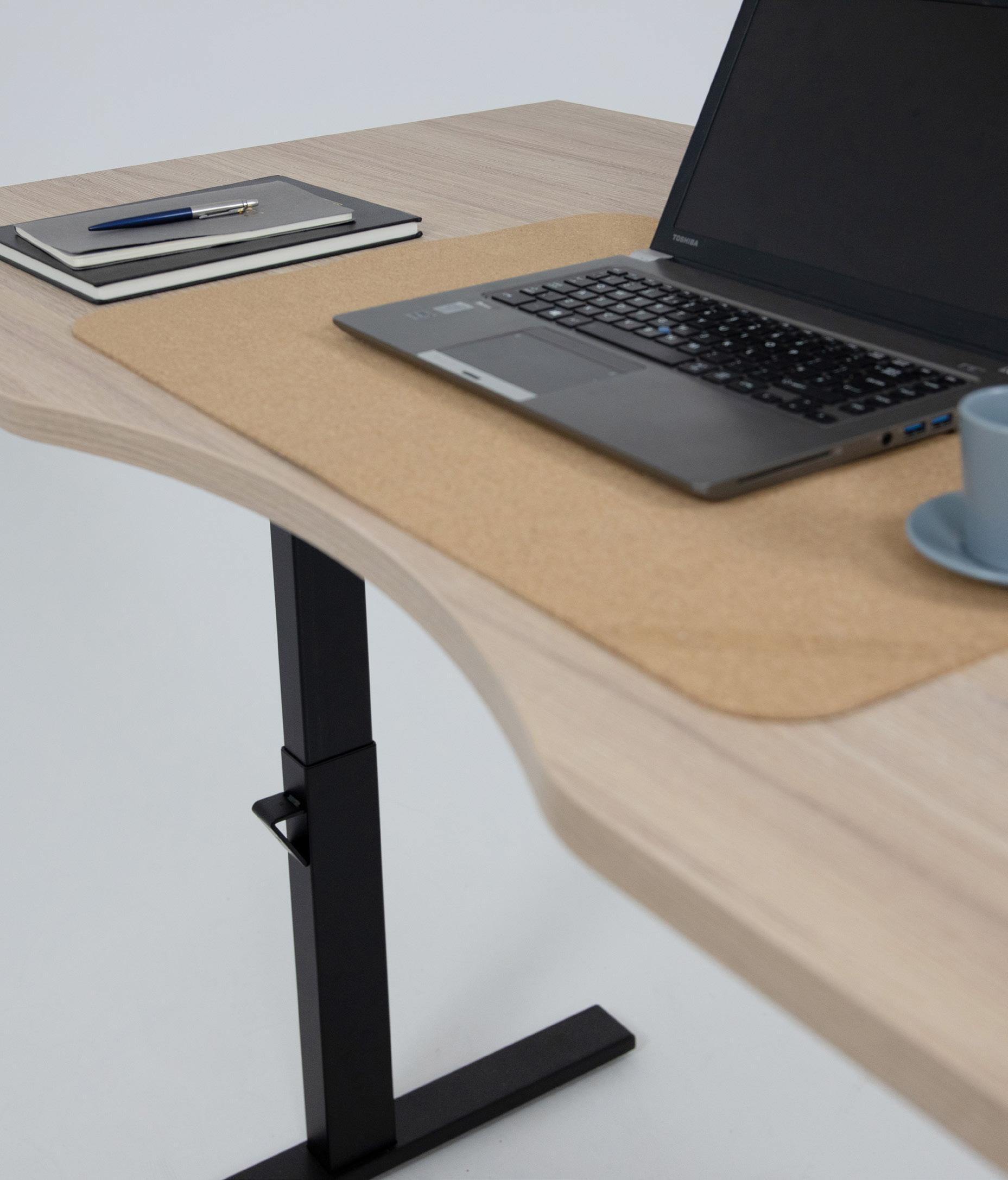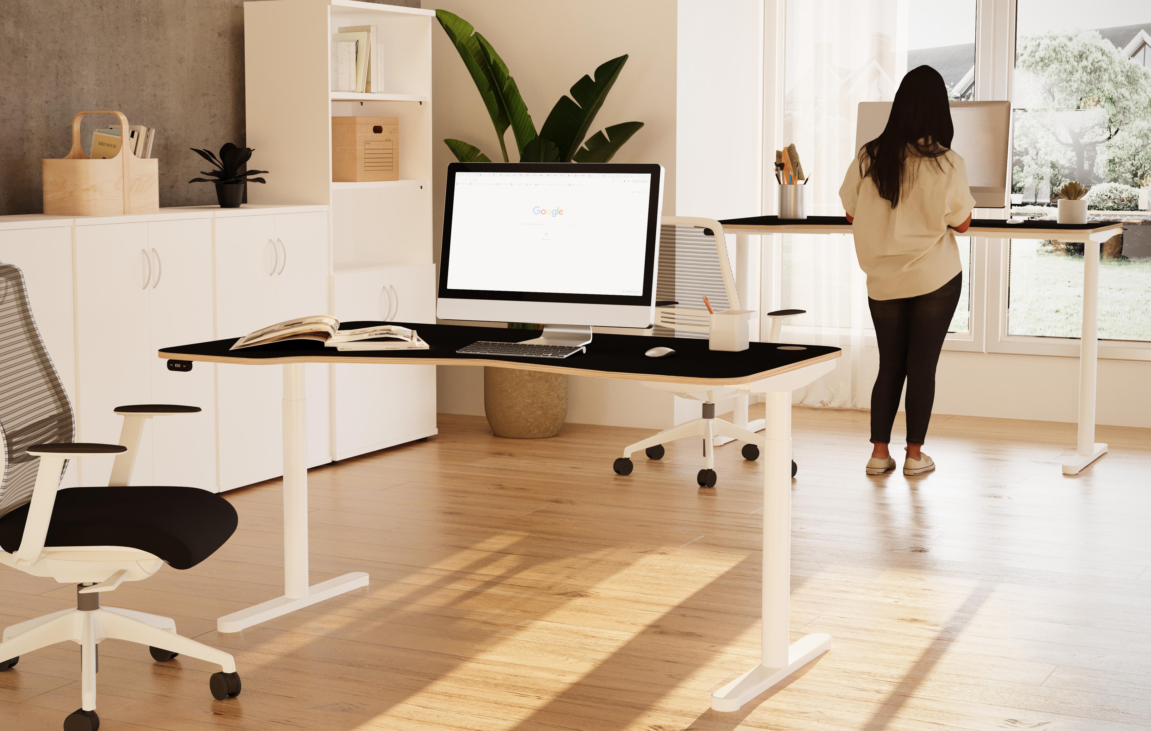 The desk height can be adjusted from 650 to 1150 mm via the intuitive dual button control.
