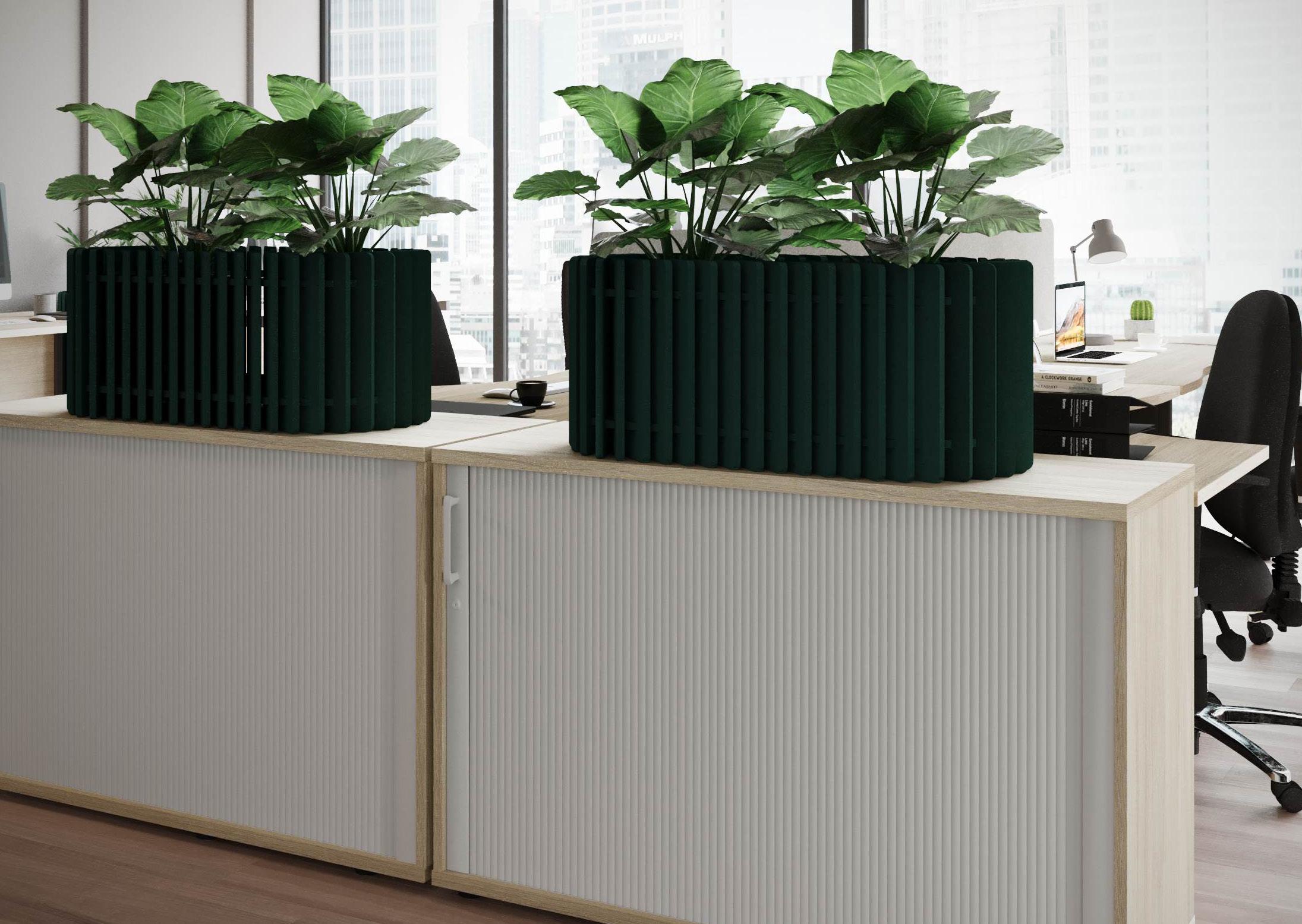 Crafted from recycled PET, these planters are ideal for any space, seamlessly blending greenery with improved acoustics. Both sustainable and stylish, they offer a perfect combination of visual appeal and functionality for your environment. Ideal for large and small areas, they serve as space dividers in open-plan offices or add visual appeal to reception areas. Beyond enhancing aesthetics, our planters improve acoustics and bring a touch of nature indoors, creating a more harmonious and inviting environment.