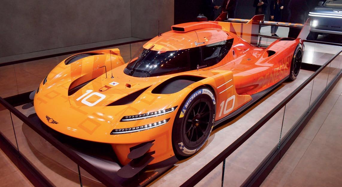 proti LR Defenderu. Sportovní prototyp GMR-001 Hypercar LMDh pro WRC 2026 včetně 24 h Le Mans a IMSA 2027 dostal osmiválec Hyundai 3,2 litru Turbo, složený z dvojice motorů WRC Rally1. Prezentace v předvečer salonu se zúčastnili závodníci André Lotterer a Pipo Derani, nechyběl ani poradce týmu Jacky Ickx a Cyril Abiteboul z Hyundai Motorsport. GMR značí Genesis Magma Program, kde Magma má stejný význam jako M u BMW či AMG u Mercedesu. Mezi sériovými typy zaujal Hyundai Palisade, velké SUV druhé generace, a to Turbo 2.5 Hybrid, anebo 3.5 V6. Byl vystaven rovněž Ioniq 9, modernizovaný Ioniq 6 po faceliftu a speciál Ioniq 5 N TA Spec (Bryan Herta Autosport), s nímž Randy Pobst loni absolvoval závod do vrchu Pikes Peak.