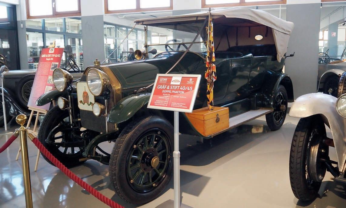 1 Gräf & Stift 40/45 z roku 1914, postavený pro císařský dvůr, dovezený společností ÖAF Gräf & Stift zpět v roce 1974 ze švýcarského exilu