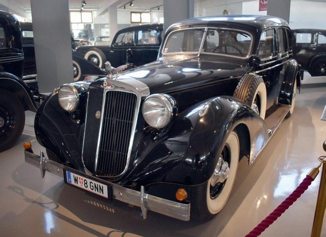 verzí, takže se tento typ stal bestsellerem značky. Luxusní model SR2, inspirovaný britským Rolls-Royce, který sloužil v rakouském generálním štábu za první světové války, byl mohutný šestiválec 7749 cm3 (ø 115 x 125 mm) o výkonu 81 kW (110 k) a zůstal ve výrobě v postupně vylepšovaných verzích SR3 a SR4 až do roku 1928 (zhruba 200 vozů). Čtyřválce byly zrušeny, nahradily je menší šestiválce SP5 a SP6 (oba kupodivu OHC 3895 cm3), vyrobené asi v 500 exemplářích. Vyvrcholením vlastní konstrukce šestiválců byl typ SP7 o objemu 7070 cm3 (100 x 150 mm) a výkonu 88 kW (120 k), opět OHC, tedy s vačkovým hřídelem v hlavě válců, který se dočkal padesáti vozů v letech 1927 – 1929. Závěrečnou fází výroby ve větších sériích byly řadové osmiválce OHC 5923 cm3 (ø 85 x 132 mm) o výkonu 92 kW (125 k)/3000 min-1 pro velké vozy SP8 (je vystavena Pullman Limousine z roku 1930) a nástupce SP9 (celkem 400 vozů v letech 1930 – 1938). Posledním osmiválcem byla řada G35, G36 a G8 (jeden vrak G36 jsme viděli v Československu) se shodným objemem 4587 cm3 (ø 78 x 120 mm), ale s návratem ke spodo-