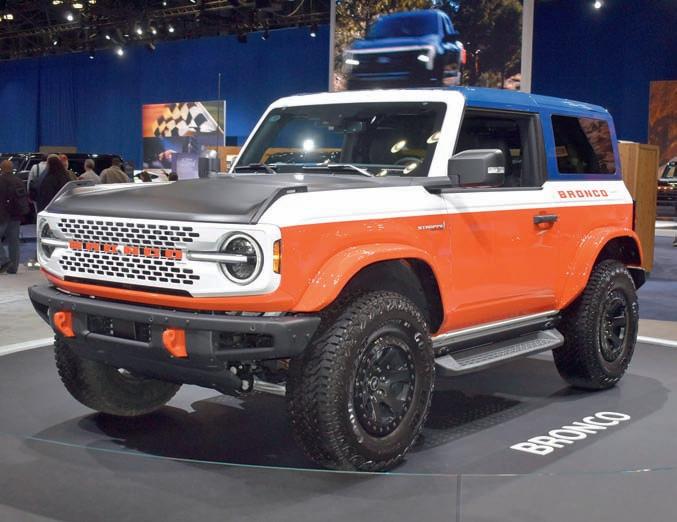 SUV, mezi lehkými užitkovými typy přežívají americké originály E-Series (loni 40 788 vozů), ale prodeje evropských konstrukcí Transit (včetně E-Transit) vzrůstají, drží se i Transit Connect (nyní jediný Ford ve službách newyorských taxikářů). Elektrický Mustang Mach-E už překonal klasický se spalovacím motorem (51 745 versus 44 003 kusů), oba mají nové verze, z nichž nás zaujala Mustang GTD s kompresorovým osmiválcem 5,2 litru o výkonu 608 kW (827 k) a převodovkou transaxle Tremec DCT8, která v prosinci zajela rekord Nürburgringu časem 6:57,685 min (jezdec Dirk Müller). Bill Stroppe (1919 – 1995) od šedesátých let postavil asi 650 upravených speciálů Ford Bronco pro závody (vyhrál Baja 1000 v roce 1971 s Parnelli Jonesem), akční model Bronco Stroppe Edition je jeho oslavou. Stellantis bojuje s poklesem odbytu, jeho americké značky utrpěly zastavením výroby oblíbených modelů, které se sice prodávaly v nevelkém množství, ale stále měly své příznivce (Dodge loni prodal 61 810 Chargerů a Challengerů z výběhové produkce, ale jen 20 559 nových Hornetů, tedy značkové varianty Alfy Romeo Tonale, navíc dovážené z Itálie). Dodge Durango, velké SUV (loni 59 357 kusů), dostalo zjednodušenou nabídku tří modelů (základní GT má 3.6 V6 Pentastar 216 kW/294 k), ale vrátily se osmiválce Hemi, a to klasický 5.7 V8/268 kW (385 k) pro Durango R/T (a 20th Anniversary Edition) a kompresorový 6.2 V8/529 kW (720 k) pro Durango SRT Hellcat. Rozbíhá se nabídka elektrických Chargerů Daytona (osmá generace) ►►►