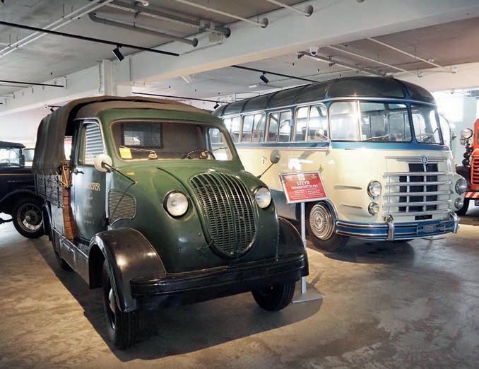 nejprve objem 984 cm3 jako typ 50, později 1158 cm3 s označením typ 55, vždy coby čtyřválcový boxer, chlazený kapalinou, uložený vpředu pro pohon zadních kol. V letech 1936 – 1940 vzniklo třináct tisíc vozů, které i dlouho po válce jezdily také u nás. Poprvé jsme viděli lehkou užitkovou verzi Steyr Transporter 150 (1938/1939) s motorem z typu 55. V muzeu nechybějí ani velké nákladní vozy Steyr z poválečných let, originální popelářská KUKA a hasičský speciál. Je tam i několik hasičských vozů Opel Blitz s nástavbou slavné rakouské firmy Rosenbauer.