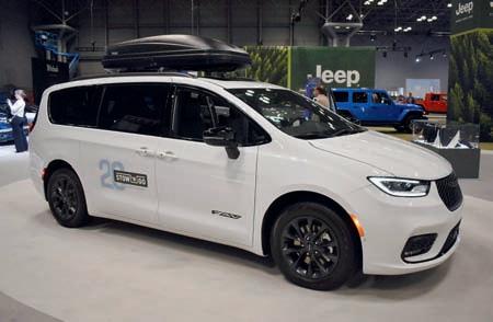 ve verzích R/T 370 kW (503 k) a Scat Pack 500 kW (679 k), vždy se dvěma elektromotory, pohonem všech kol, akumulátorem 100,5 kWh a simulací zvuku osmiválce! Ve druhém pololetí vyjedou motorové verze Sixpack HO (2 Door) a SO (4 Door) s třílitrovým řadovým šestiválcem Hurricane Twin Turbo. Chrysler, kdysi vedoucí značka třetího amerického koncernu, prožívá krizi po zastavení výroby sedanů (posledních 5295 typů 300 prodáno loni), ale ředitelka Christine Fuell slibuje rozšíření na tři modely (přežívá minivan Pacifica, 2026 bude omlazen a přibude crossover, následovaný novým modelem na základě vystaveného elektrického konceptu Halcyon z roku 2024). Prodeje Stellantisu v USA vede tradičně Jeep, bestsellery jsou jako obvykle Grand Cherokee (loni 216 148), nesmrtelný Wrangler (151 163) a Compass (111 697). Nový je Wagoneer S, plně elektrický na platformě STLA Large se dvěma elektromotory (Launch Edition 447 kW/607 k, Limited 373 kW/507 k) a akumulátorem 100,5 kWh (dojezd až 488 kilometrů). Jméno Wagoneer a Grand Wagoneer zůstává největším