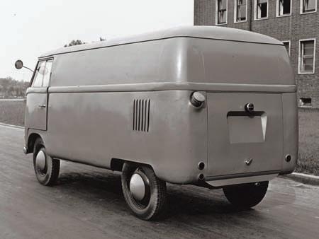 Dodávkové vozy s motory vzadu se po válce prosadily díky Volkswagenu, z iniciativy Ben Pona vyvinutý Typ 2 na základě Brouka (Typu 1) pak byl retrospektivně značen napříč generacemi coby Transporter T1 až T7 (do T3 měl plochý motor vzadu, T3 Diesel ale vzadu řadový, na bok skloněný čtyřválec). V USA dostal v letech 1961 – 1965 stejnou koncepci Chevrolet Corvair Greenbrier (plochý vzduchem chlazený šestiválec), a to včetně pickupu, v Itálii se vyráběla řada lehkých typů Fiat 600T, 850T a 900T s jednoprostorovou karoserií a malým řadovým čtyřválcem v zádi (do 1985), samozřejmě byly i další konstrukce včetně Subaru Sambar a československých prototypů Škoda 105/120 (BAZ Furgonet).