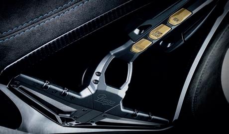 4 Silueta dvoumístného vozu, určeného jak na silnice, tak pro jízdu na okruzích 5 Hrdý nápis Praga na zádi českého hypersportu 6 V obou bočnicích jsou schránky na zavazadla 7 Snímací vícefunkční volant s centrálním displejem 8 Dvě anatomická sedadla s nastavitelným sklonem