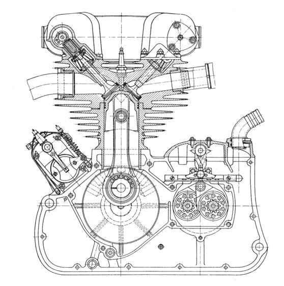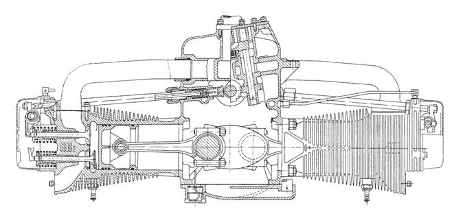 2 Příčný řez vzduchem chlazeným čtyřválcem Franklin, motorem stejné koncepce jakou měly Volkswageny