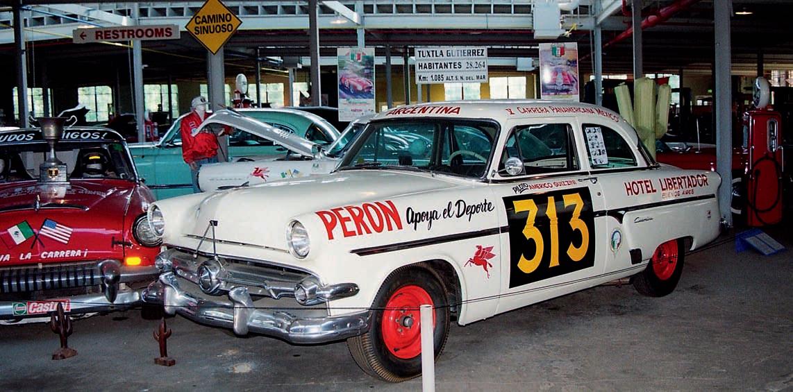 Ford Customline se šestiválcem 3,7 litru, s nímž Americo a Bernardo Guzziniové z Argentiny absolvovali závod Carrera Panamericana