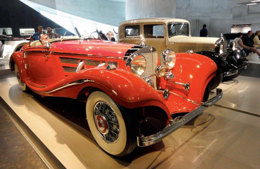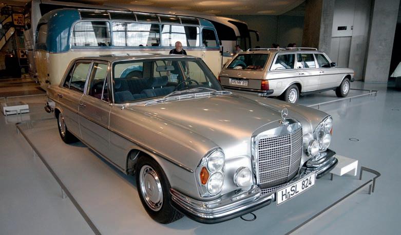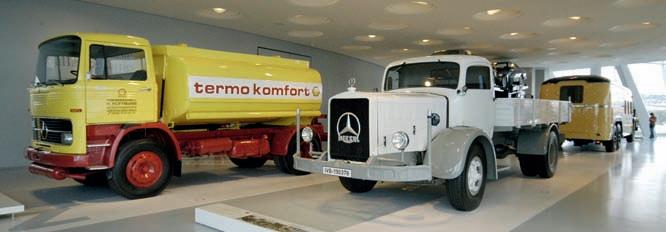 úspěšných závodních vozů je v muzeu vystavena na klopené dráze, podobně jako v Turínském automobilovém muzeu. Motoristický sport přispěl významnou měrou k vývoji sériových typů, MercedesBenz však patří i k největším průkopníkům aktivní a pasivní bezpečnosti; vystavená Heisswasserrakete sloužila k urychlování vozů pro nárazové testy a dvojice kabely propojených vozů, zkušebního sedanu 220 S (1964) a kombi 300 Messwagen (1960) pro sběr dat, připomíná doby, kdy ještě bezdrátová komunikace byla v plenkách. Vznětový motor se pod kapotou osobního vozu MercedesBenz 260 D objevil v roce 1936 (společné prvenství s Hanomagem), rotační typu Wankel (tři a čtyři rotory) se zkoušel v experimentálním kupé C111 od roku 1969, následovaly spalovací turbíny, vodíkové a plynové motory, jiná alternativní paliva, klasické elektromobily, hybridní vozy a vodíkové palivové články. Nešlo jen o osobní automobily, ale také o nákladní, autobusy, traktory a stroje Unimog. Historie průkopníka automobilů MercedesBenz je nesmírně bohatá a letos čítá sto čtyřicet let neustálého pokroku. ■