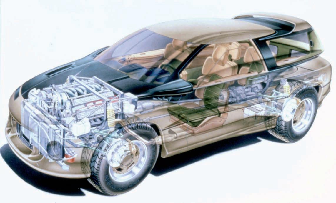 2 Mercedes-Benz Auto 2000, prototyp vozu budoucnosti z roku 1981, navržený pro různé druhy pohonu včetně spalovací turbíny, V8 s vypínáním válců a turbodieselu V6