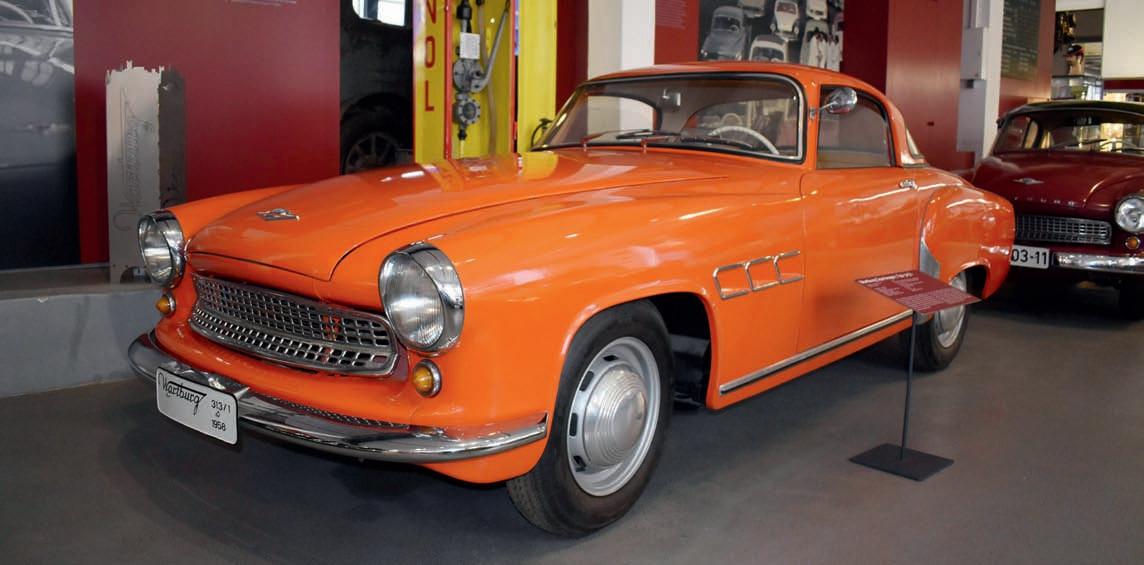 Wartburg 313/1, supersportovní verze Coupé s tříválcem 900 cm3 o zvýšeném výkonu 37 kW (50 k), nesplněný sen většiny řidičů v NDR (1958; vzniklo 469 kusů do roku 1960)