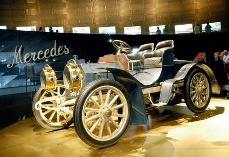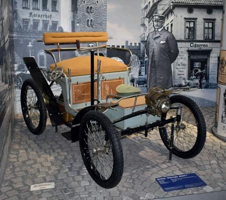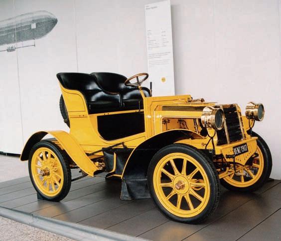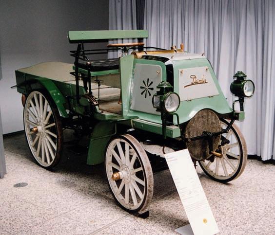 (první motocykl světa s dřevěným rámem) a se zvětšeným objemem na 462 cm3 zabudoval do prvního automobilu, známého jako Daimler Motorkutsche (1886). Nezávislý vývoj vedl i Karl Benz (1844 – 1929); po studiích na Polytechnice v Karlsruhe pracoval v různých firmách, ale pak založil vlastní a věnoval se dvoudobému spalovacímu motoru, jenž se poprvé rozběhl na Nový rok 1879. O čtyři roky později založil Benz & Co., Rheinische Gasmotorenfabrik, v Mannheimu; pak setrval v dozorčí radě DaimlerBenz AG až do své smrti v roce 1929. Gottlieb Daimler takové štěstí neměl, v roce 1890 založil DaimlerMotorenGesellschaft, ale před svou smrtí v březnu 1900 ještě zažil uplatnění vlastních motorů v silničních vozidlech, ve vzduchu, na železnici i na vodě. V expozici jsou různé první aplikace včetně člunů, požárních stříkaček, vzducholodi a kolejových vozidel.