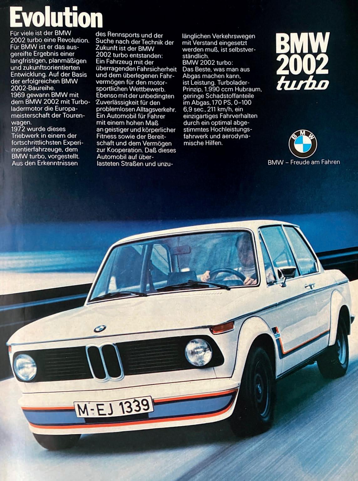 Toto není placená inzerce, ale ukázka dobové reklamy na BMW 2002 Turbo (1973)