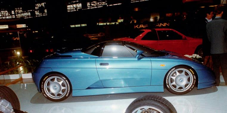 De Tomaso Guarà s motorem BMW V8 na snímku pořízeném před Ženevským autosalonem 1998