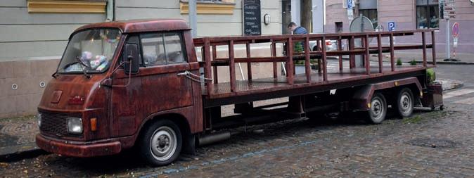 Třínápravový Hanomag-Henschel F25, zastižený v pražském Karlíně ještě v roce 2021