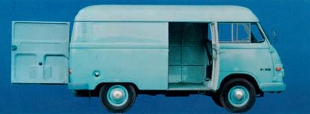 7 Skříňové vozy měly křídlové dveře vzadu i na bocích, prosklená verze Minibus nebo Combi byla pro náklad a pět až devět cestujících (1967)